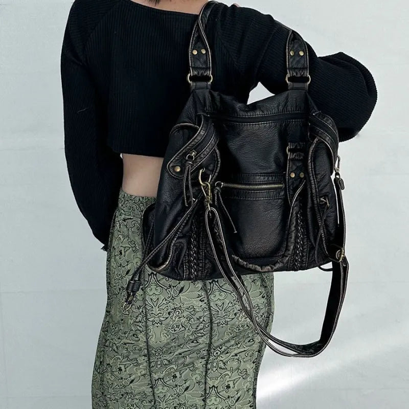 Oplev den perfekte kombination af stil og funktionalitet med vores sorte håndtaske til skolen. Denne vintage inspirerede taske fra Pu Leer tilbyder både elegance og bæredygtighed, hvilket gør den ideel til enhver lejlighed.
