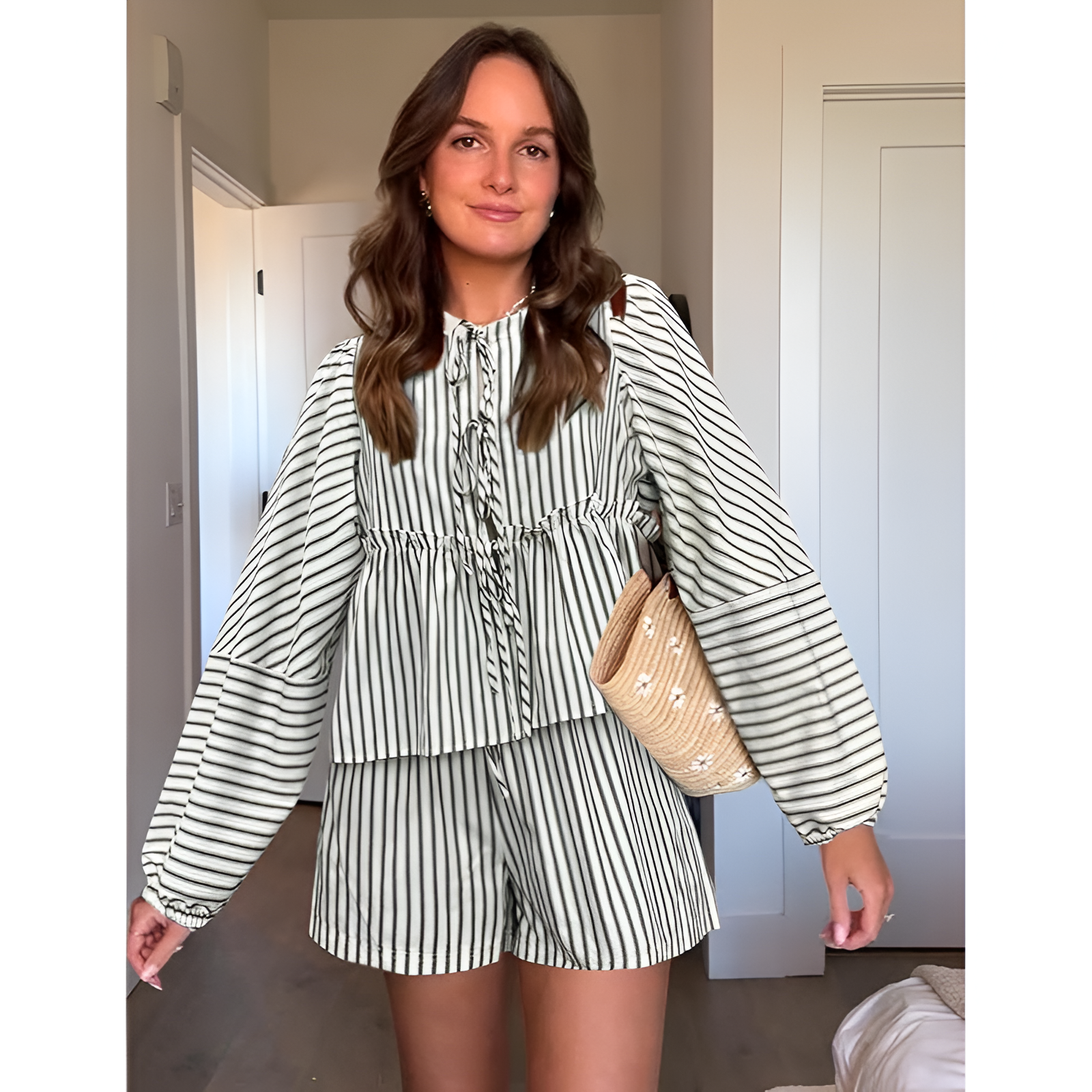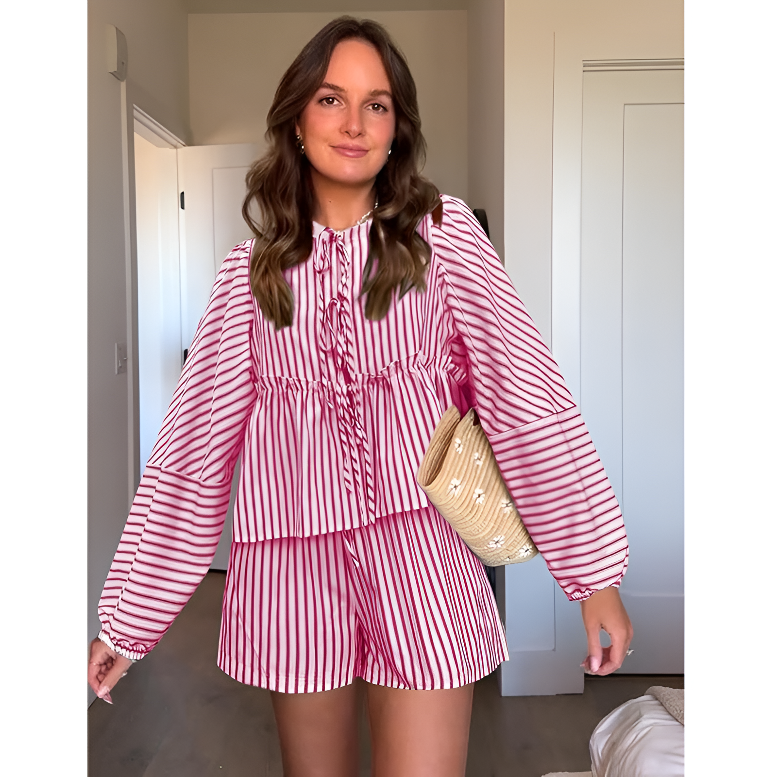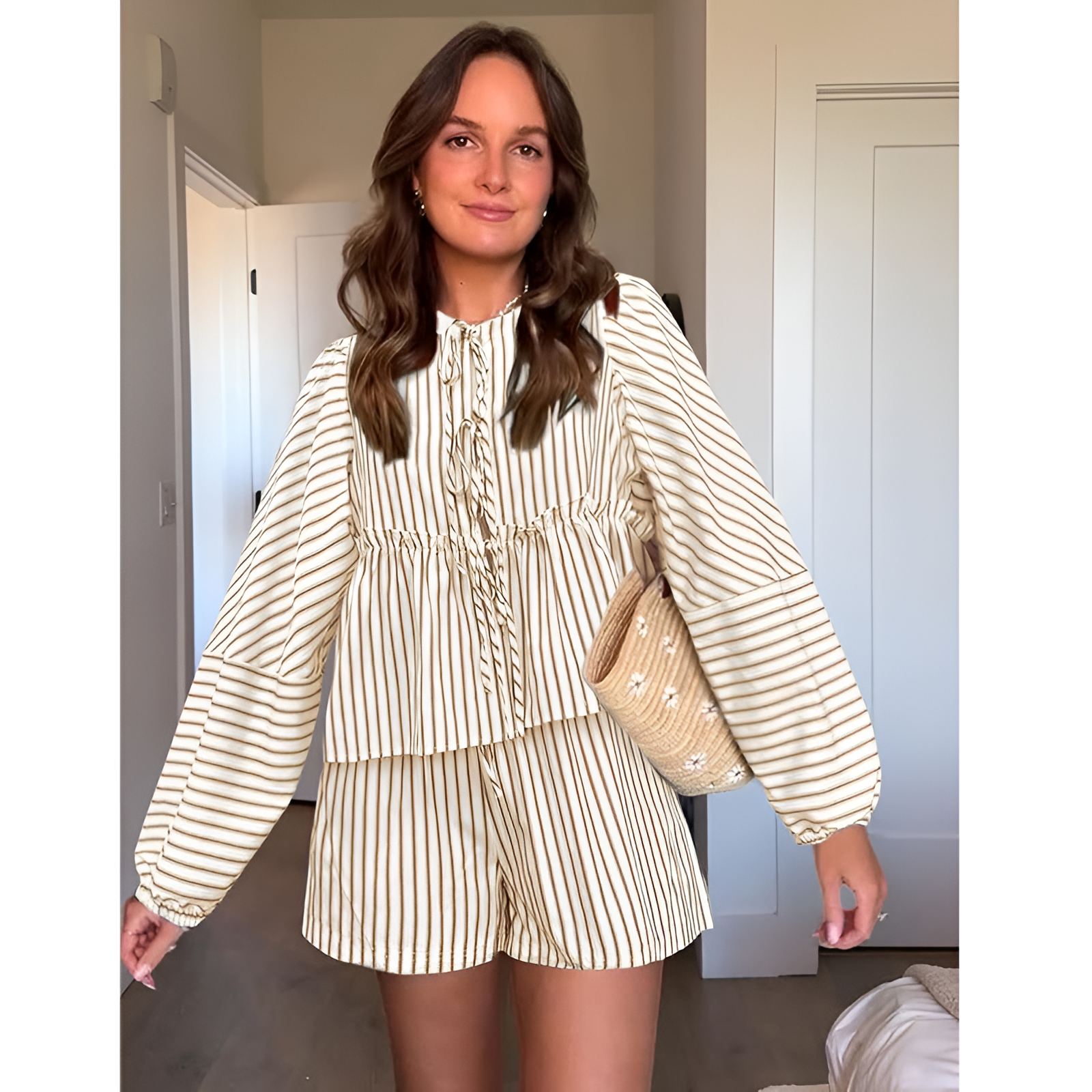 Oplev det perfekte outfit til varme dage med vores bluse og shorts sæt. Dette sæt tilbyder en let og åndbar pasform, der sikrer, at du føler dig godt tilpas hele dagen. Det stilfulde design med et skønt mønster gør det ideelt til både afslappede og festlige anledninger. Uanset om du slapper af derhjemme eller er på farten, vil dette sæt give dig et moderne look. Vælg dette sæt for at kombinere stil og funktionalitet i din sommergarderobe.